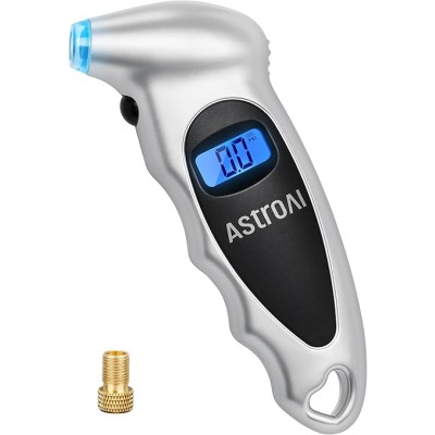 AstroAI Tire Pressure Gauge Digital 0-150PSI (Accurate in 0.1 Increments), 4 Settings Stocking Stuffers for Car Truck Bicycle with Backlight LCD and Presta Valve Adaptor, Sliver